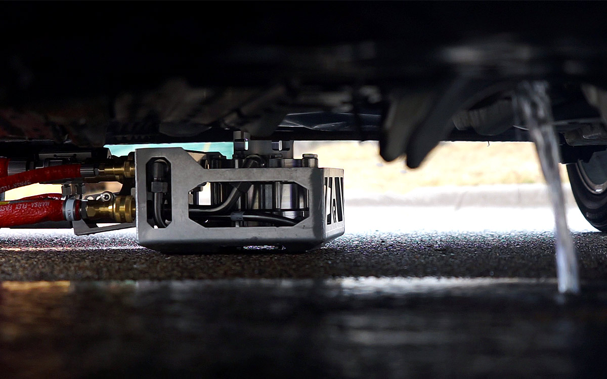 A posição preferencial da unidade de extinção é na parte inferior do veículo. A unidade operacional aciona a penetração da ferramenta de perfuração no compartimento da bateria a uma distância segura. Imediatamente após a perfuração, o invólucro da bateria é inundado com água e o processo de resfriamento eficiente começa.